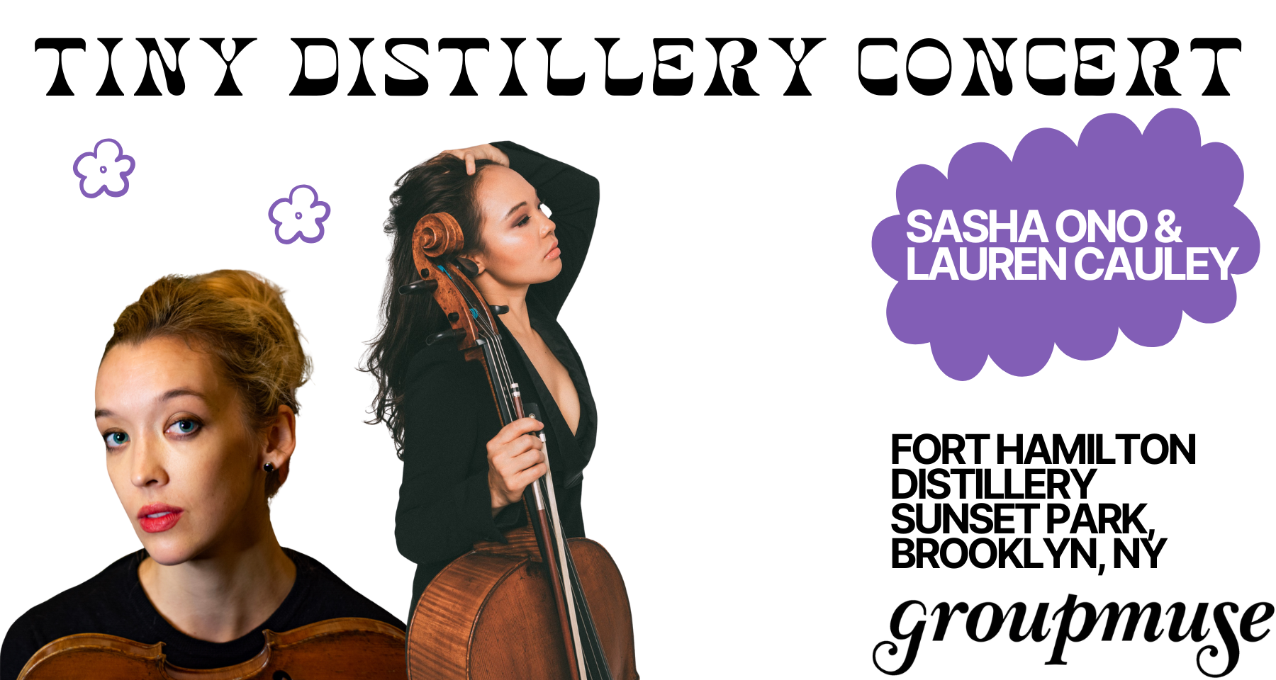 Brooklyn, NY, February 13 — Tiny Distillery Concerts returns featuring acclaimed musicians Sasha Ono (cello) and Lauren Cauley (violin) on Friday, February 13, at Fort Hamilton Distillery, 68 34th Street, 2nd Floor, Brooklyn. Doors open at 7:30 PM, with the performance beginning at 8:00 PM.